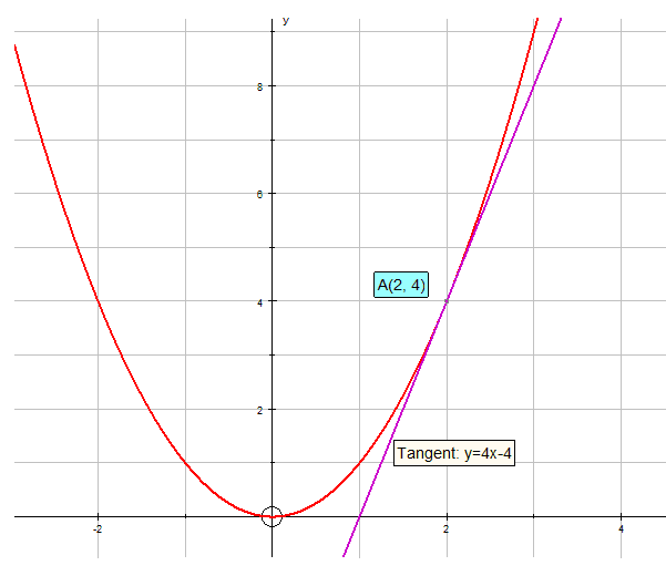 When A is the point ( 2, 4), the gradient of the curve is 4.